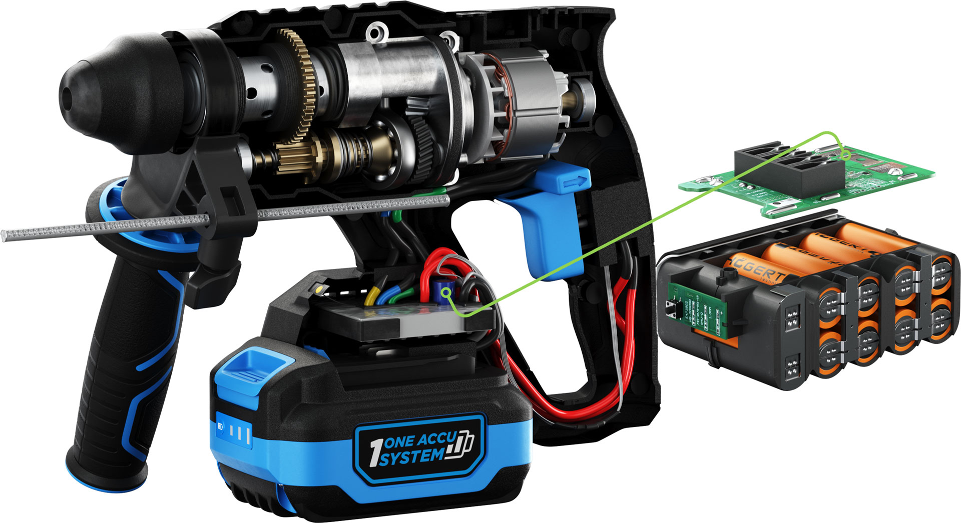 Электронные системы обеспечивают оптимальное использование энергии, накопленной в батареях, увеличивая время работы электроинструментов. Продвинутые датчики и регуляторы управляют работой устройства в зависимости от температуры самого аккумулятора и текущей потребности в мощности. Кроме того, обеспечивается быстрая зарядка батарей, что сокращает время простоя.