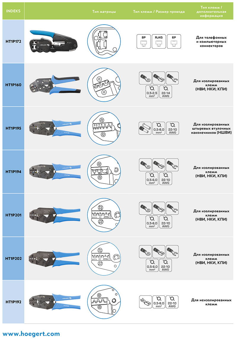 Зная потребности наших клиентов, мы стараемся подобрать наше предложение, чтобы удовлетворить ожидания даже самых требовательных пользователей. Мы знаем, насколько сложна электротехническая промышленность и как важно выбрать правильные инструменты для выполнения своих ежедневных обязанностей, поэтому мы заботимся о качестве и удобстве использования нашей продукции. В задачи нашего бренда никогда не входило использование полумер, поэтому мы поставили перед собой цель расширить наше предложение, чтобы каждый мог найти продукцию, которая будет служить ему долгое время, а выполняемая им работа будет точной и аккуратной. Для того чтобы облегчить выбор подходящих плоскогубцев, мы создали сравнительную таблицу по типу губок и наконечников. Мы также включили информацию о типе сечения проводника, с которым клещи справляются лучше всего. В таблице также содержится информация о типе провода, для которого выбираются клещи. Пожалуйста, ознакомьтесь с нашим предложением.