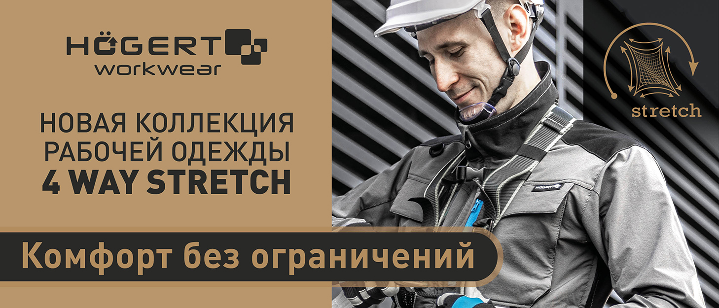 В ассортименте изделий для охраны труда компании Hӧgert Technik накладки из ткани 4-Way Stretch используются в следующих изделиях: