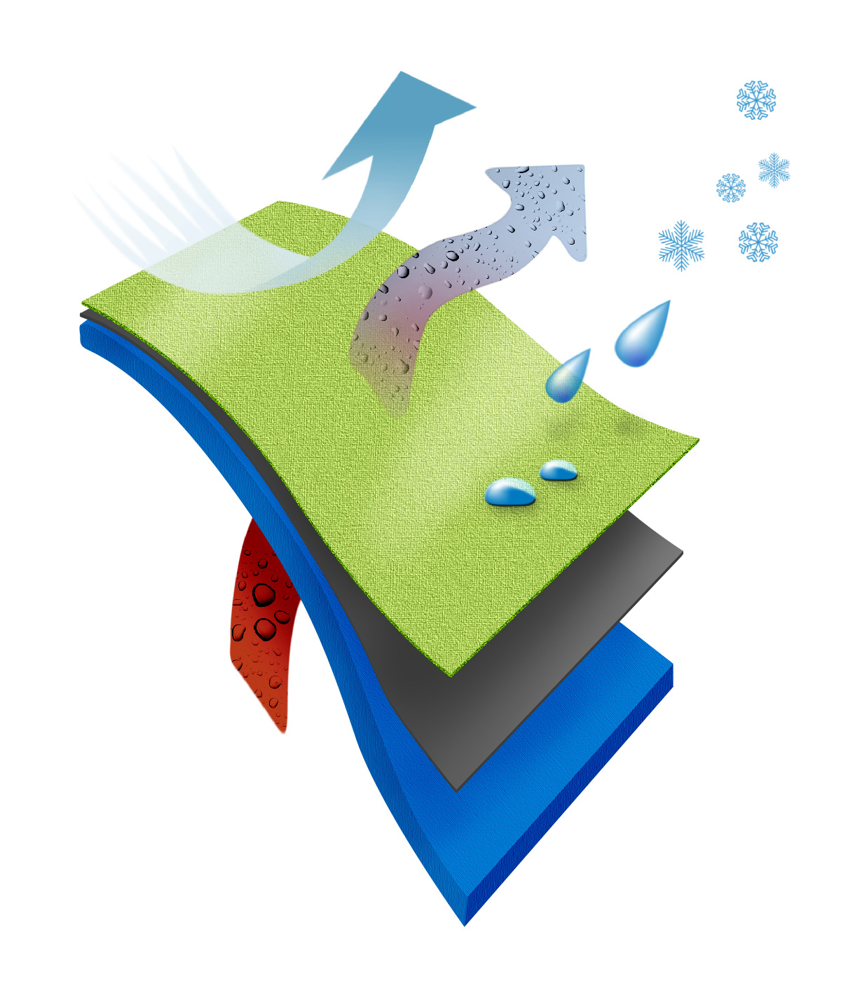 Важным понятием, наиболее часто используемым в описаниях верхней одежды, является DWR. Это важный элемент защиты от дождя. Durable Water Repellency (DWR) — пропитка для одежды, обеспечивающая защиту от быстрого намокания, придающая ей водоотталкивающие свойства. Покрытие, которое наносится на ткань путем пропитки, обеспечивает тонкий водостойкий слой, отталкивающий воду. Наиболее используемым средством в промышленности для этой цели является фторполимер.