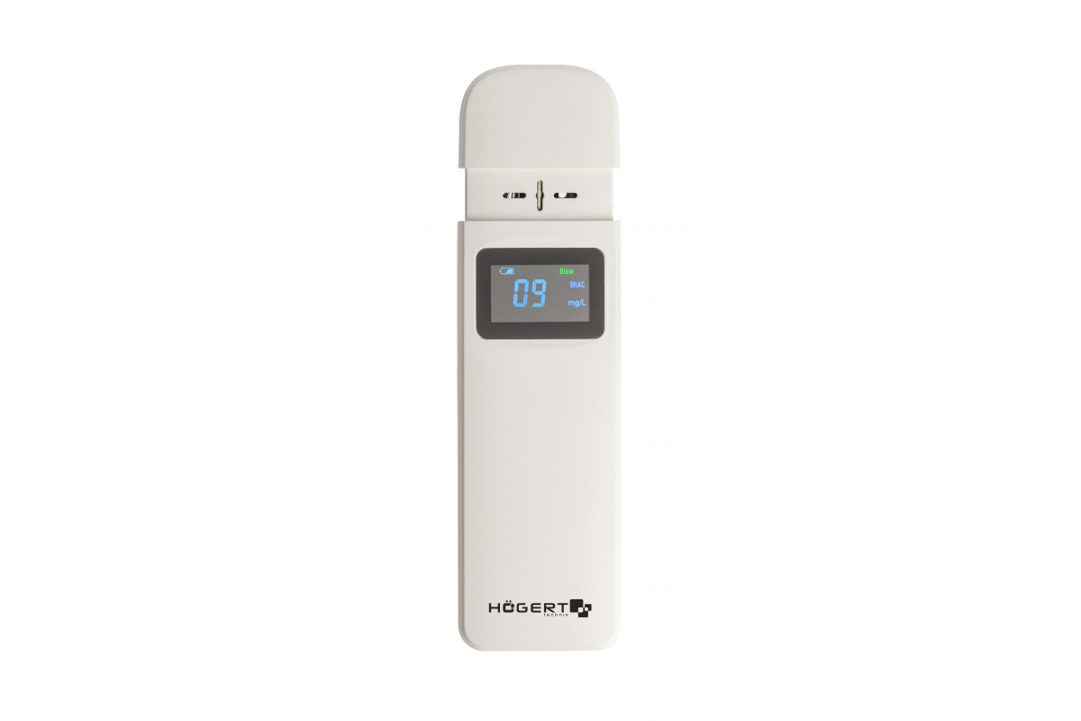 Компактное устройство для быстрого и простого определения уровня алкоголя в выдыхаемом воздухе.