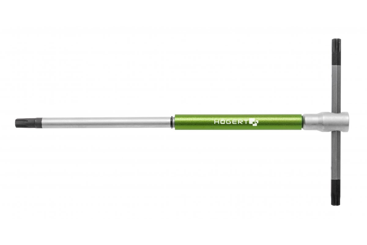 Т-образный вороток, Torx, с размерами от T10 до T40. Позволяет воздействовать на головку или винт с большим вращательным моментом. Предназначен для монтажных работ и в СТО.