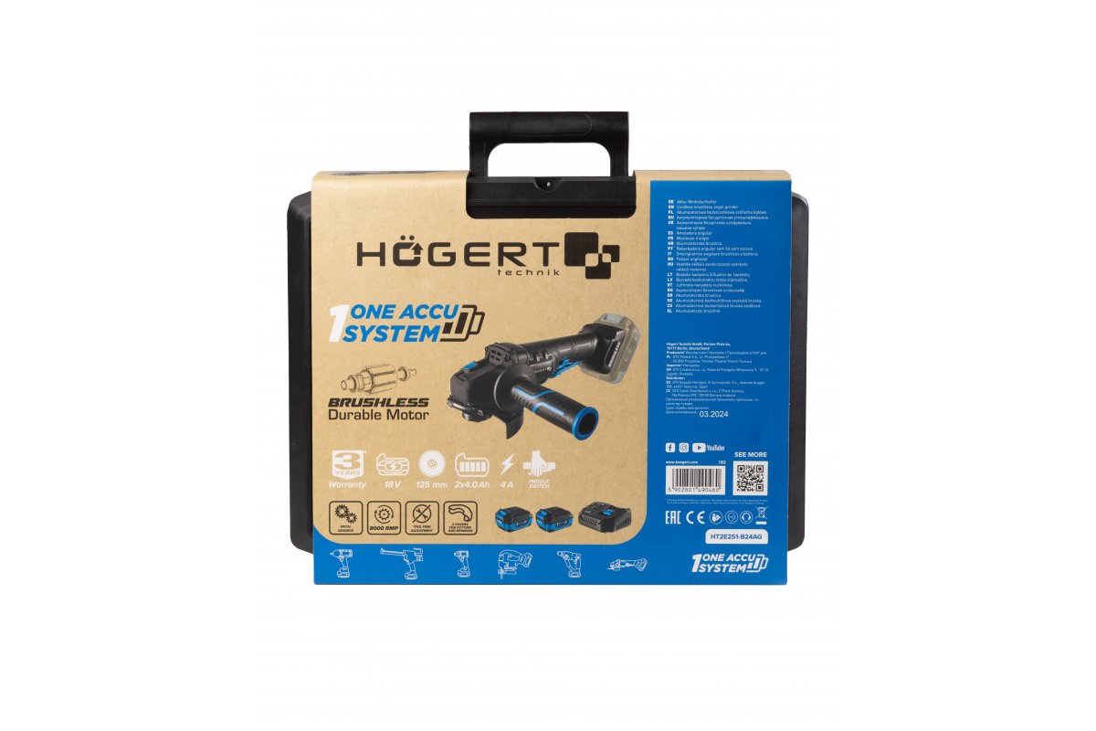 | Объем поставки | основной блок, боковая ручка, шлифовальная защита, отрезной, зарядное устройство 4 A (HT2E242-C4), 2 x 4 Ah (HT2E240-A40), на случай |