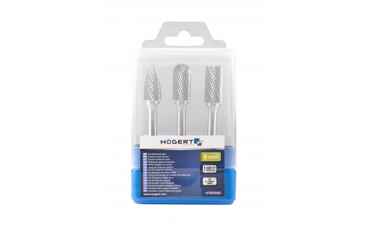 Набор из 3 борфрез, предназначенных для обработки таких металлов, как сталь, алюминий и чугун. Также подходит для работы с пластиком, керамической плиткой, камнем и деревом.