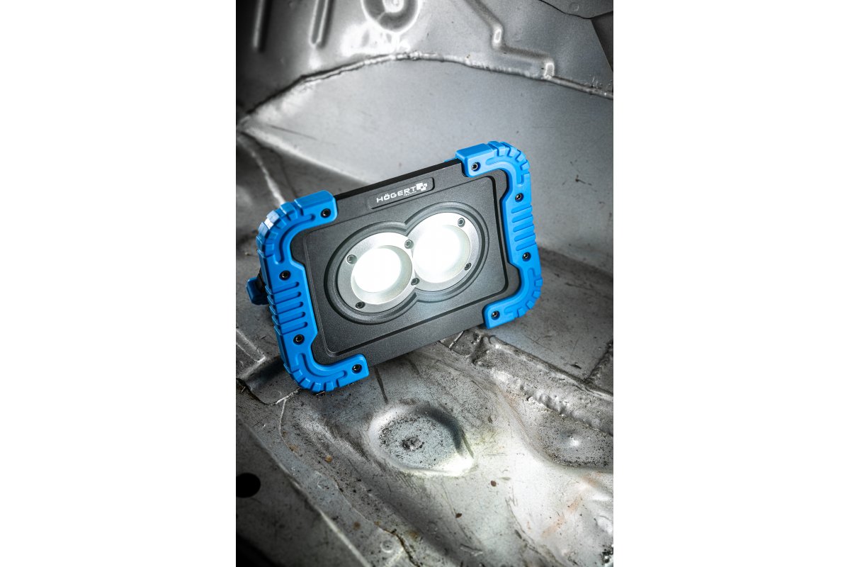Портативный прожектор полезен в любой мастерской или на строительной площадке, особенно при работе или выполнении других действий в плохо освещенных местах или после наступления темноты. Заряжается через USB с функцией POWER BANK. Предназначен для профессионального использования.