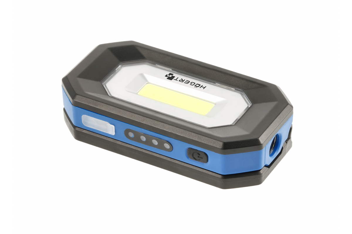 Мощный магнит позволяет прикрепить прожектор к металлическому предмету, например, к крышке двигателя, освобождая руки для работы.