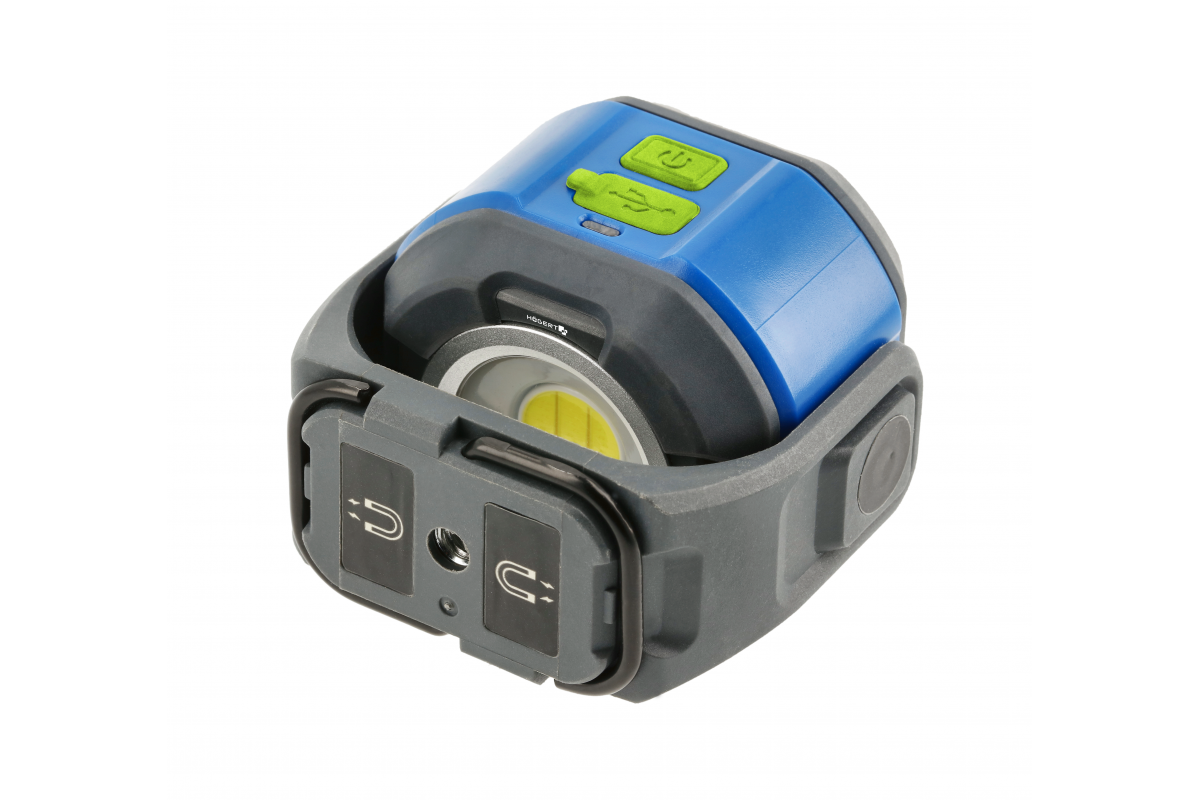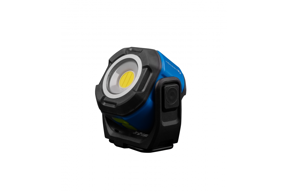 Мощный магнит и складной подвесной крюк позволяют установить прожектор в любом месте, освободив руки для работы.
