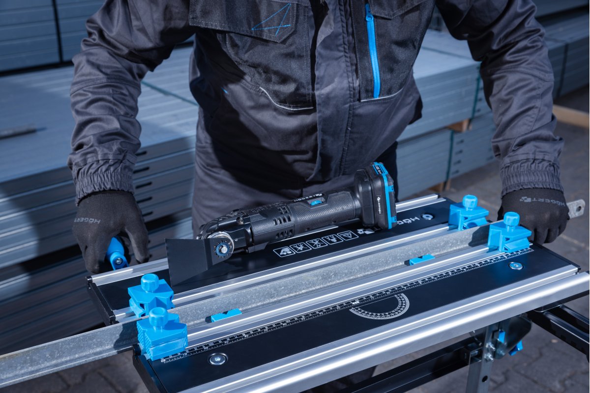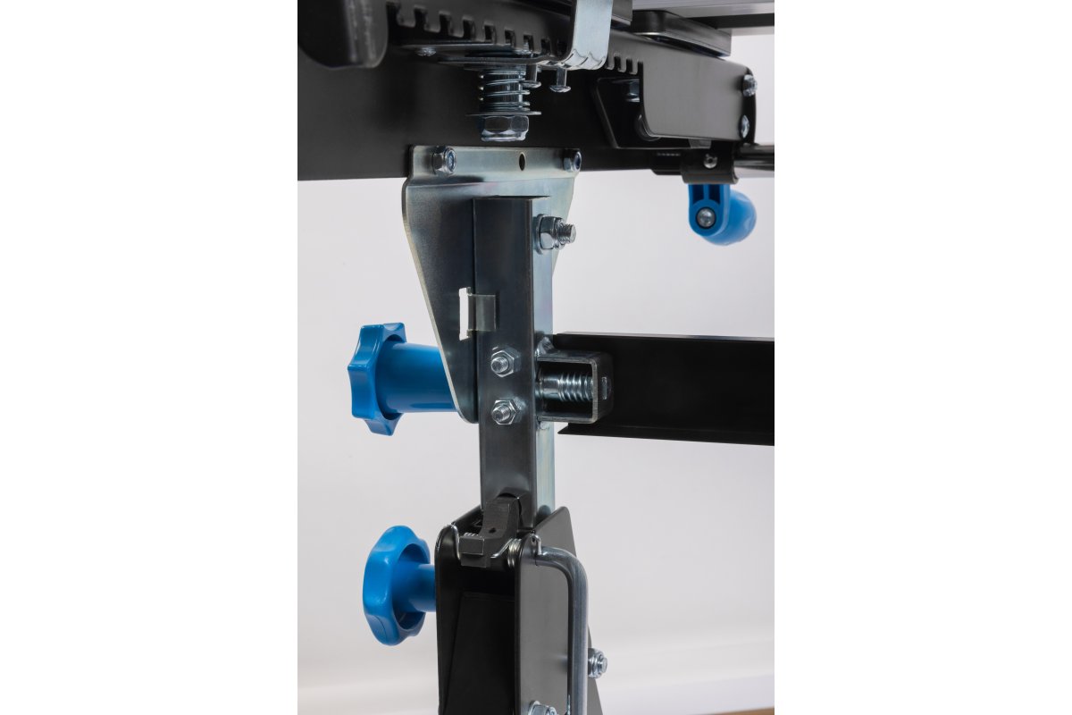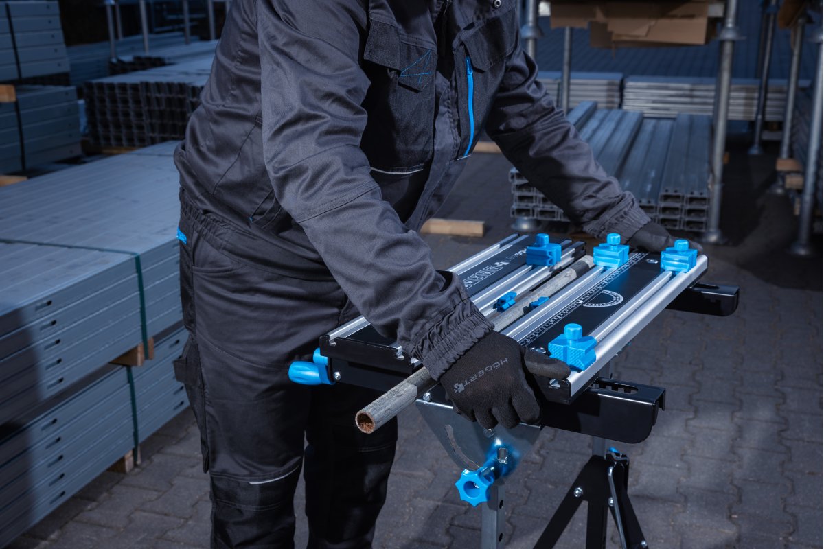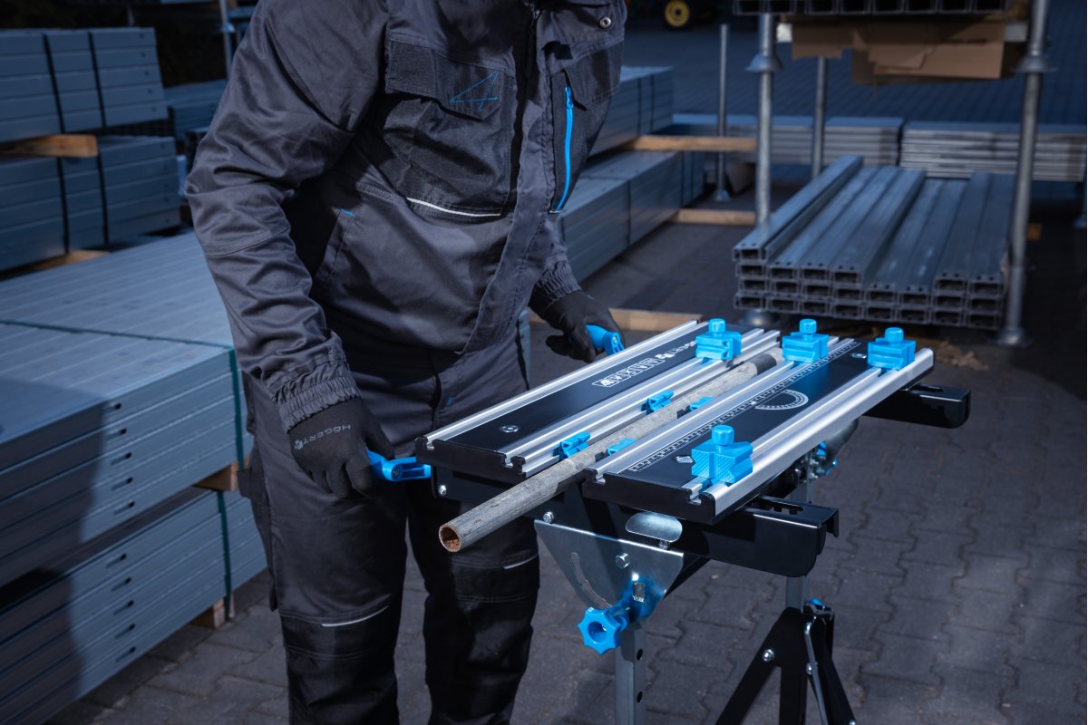 Прочная сталь и устойчивый и легкий алюминий, из которых изготовлены столешница и конструкция, гарантируют устойчивость и долговечность инструмента.