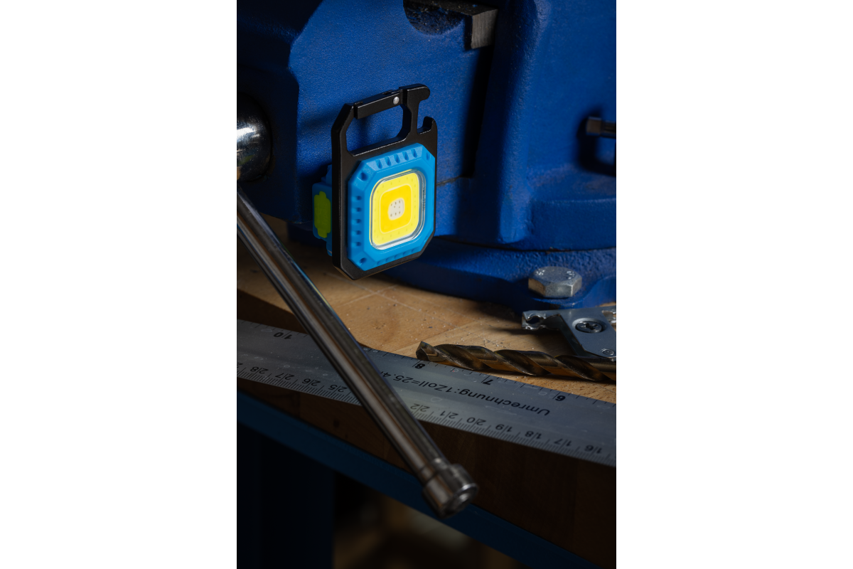 Мощный магнит позволяет закрепить мини-фонарь на любой металлической поверхности, освобождая руки для работы.