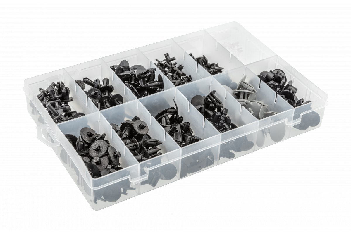 - 12 видов клипс, 350 штук в упаковке;
