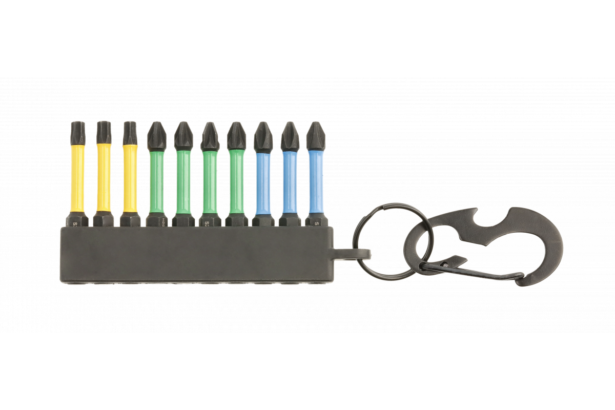 Набор из 10 бит, предназначенных для использования с ударными шуруповертами и дрелями с патроном 1/4″.