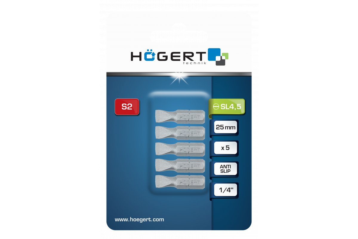 HOEGERT Биты SL4, 25 мм, сталь S2, 5 шт.