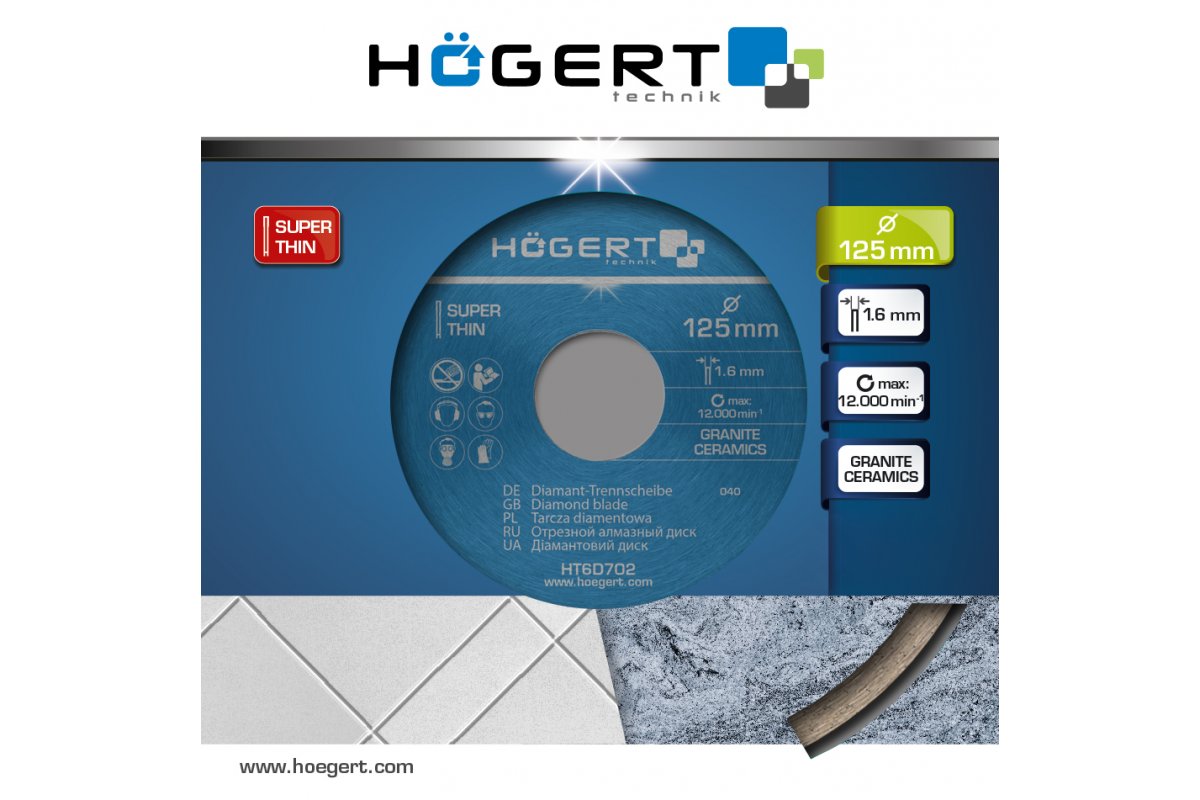 HOEGERT Диск отрезной алмазный, сплошная кромка 125 х 1,6 х 22,2 мм