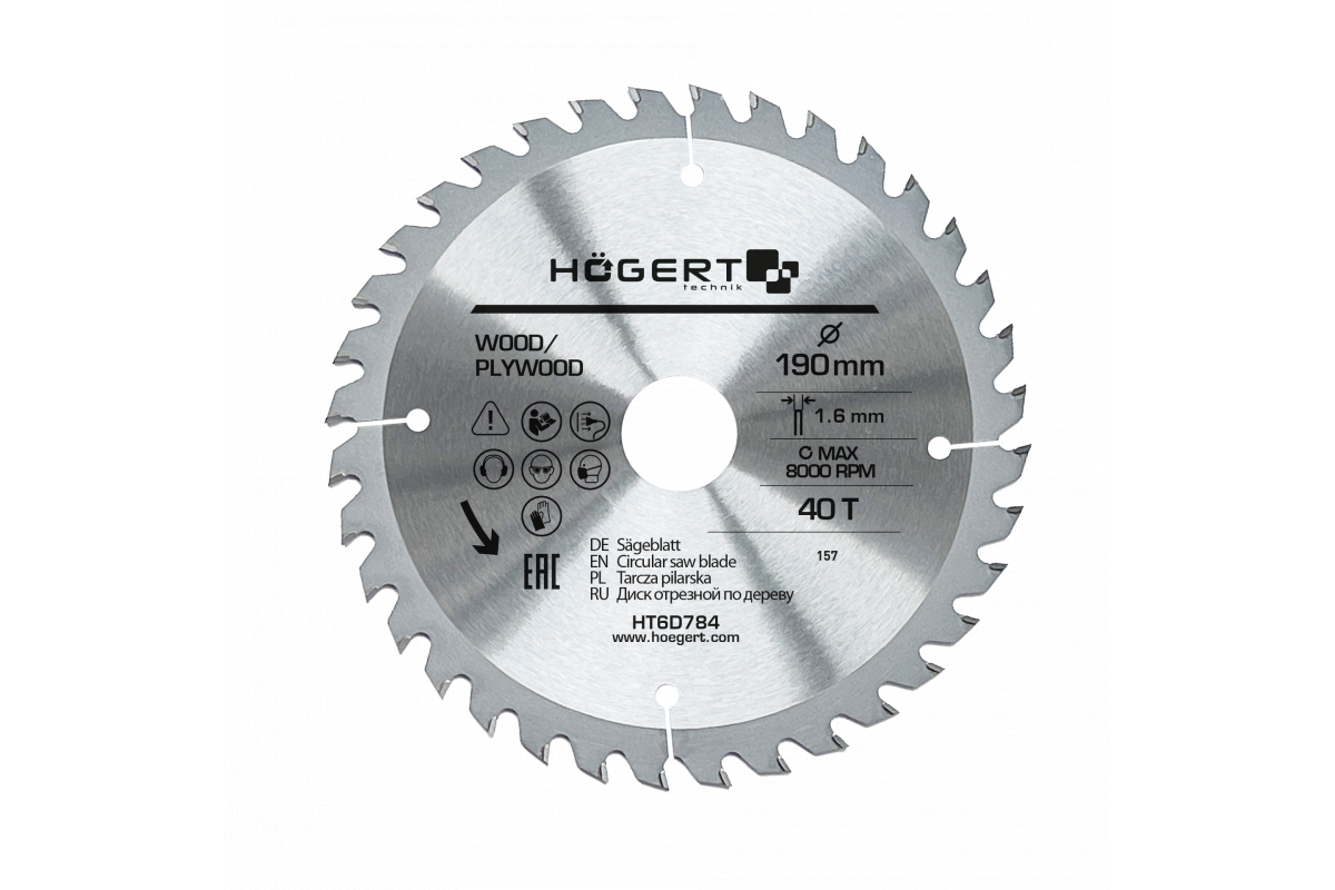 HOEGERT Диск пильный по дереву 190x40Tx30, Mn65