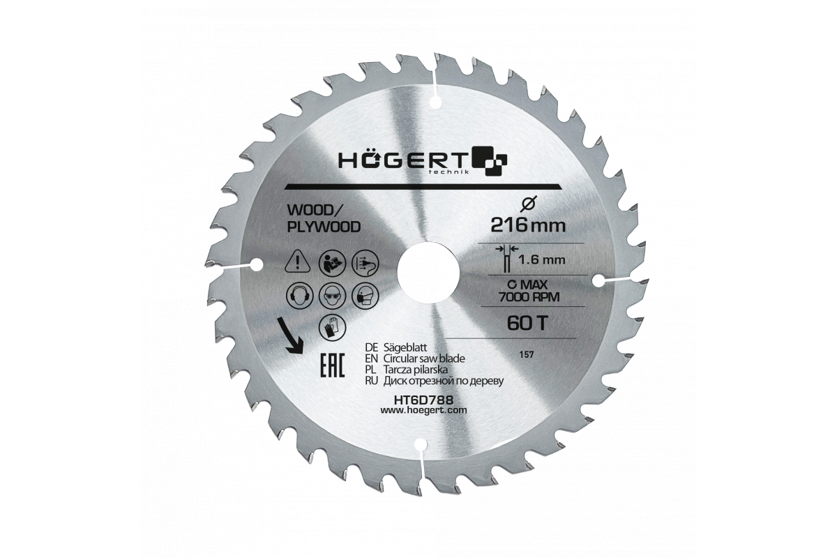 HOEGERT Диск пильный по дереву 216x60Tx30, Mn65