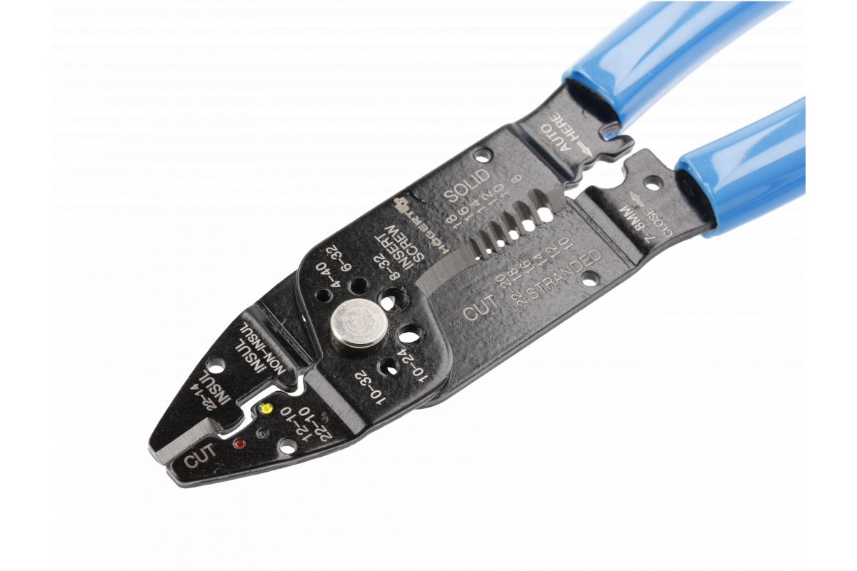 0,5 — 5,5 мм² (22-10 САГ) — неизолированные наконечники; - стриппер для снятия изоляции с проводов с сечением 0,5 — 6,0 мм² (22-10 AWG);