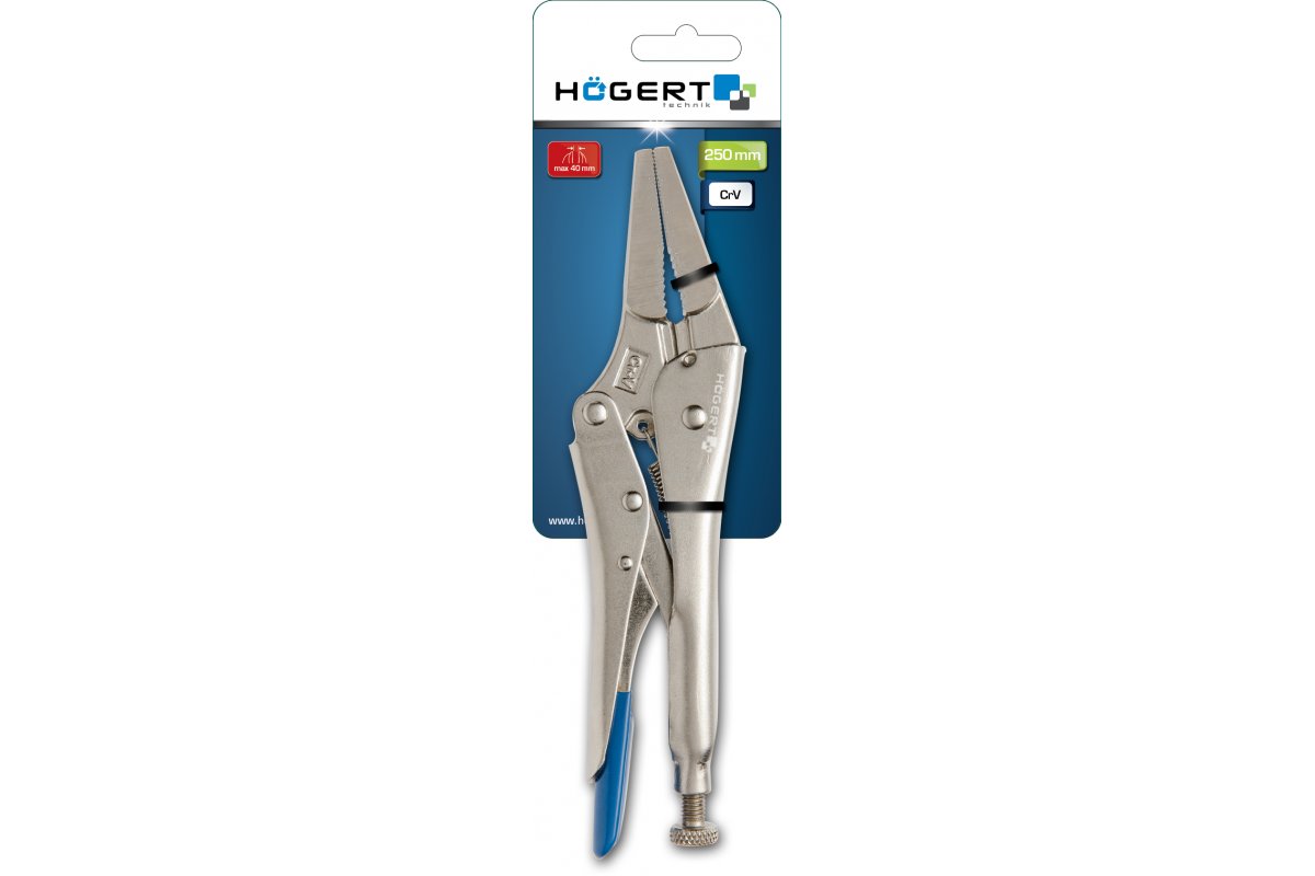 HOEGERT Клещи зажимные — удлиненные прямые губки, 225 мм.