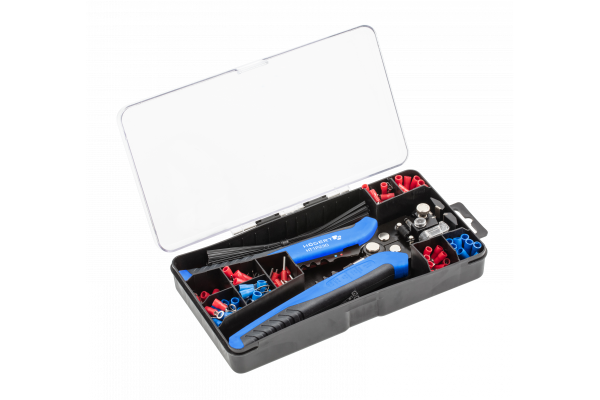 HOEGERT Клещи зачистные с набором клемм 200 элементов