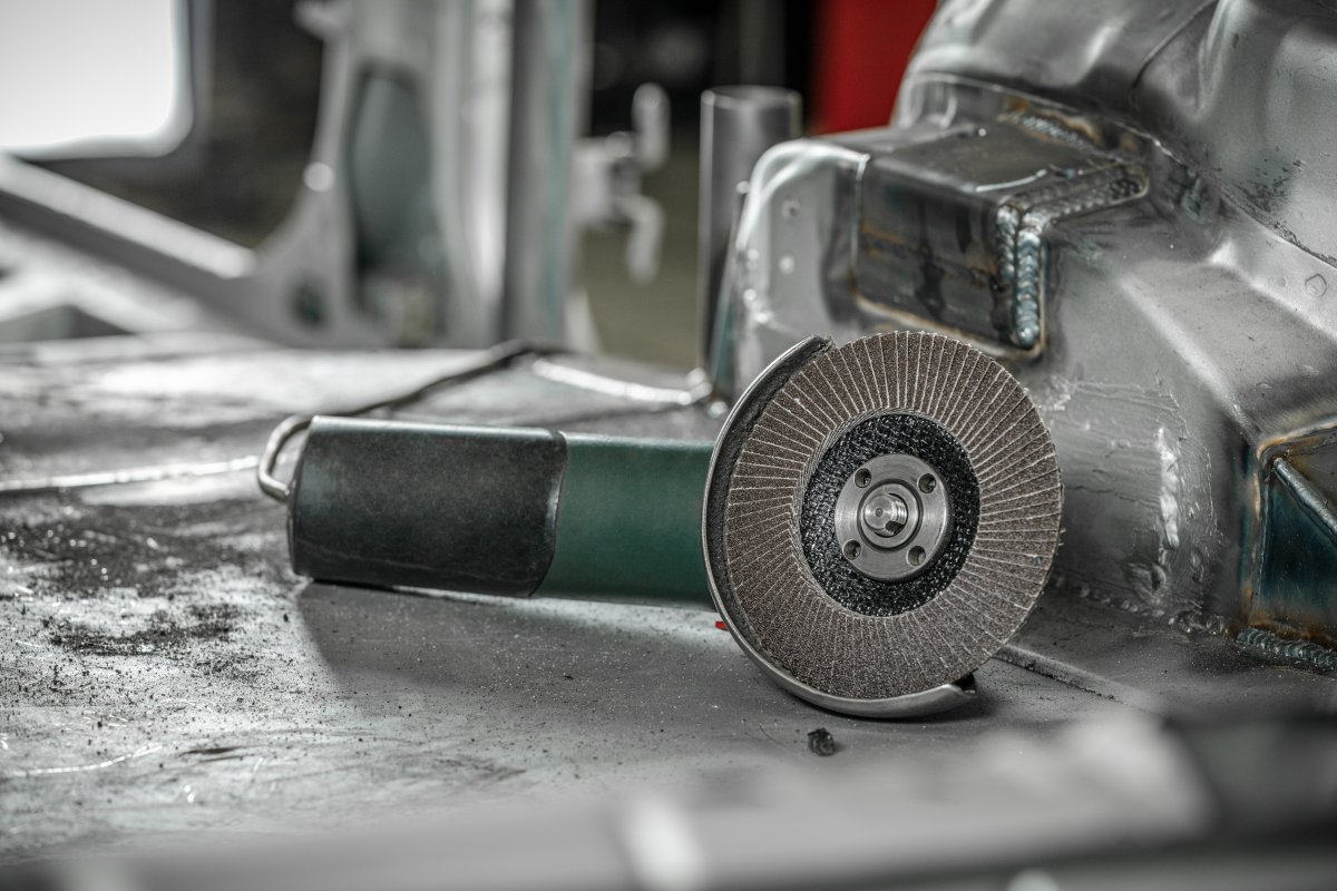 - выпуклая форма диска и рабочая поверхность с лепестками, расположенными под углом значительно облегчают работу с угловой шлифовальной машиной;