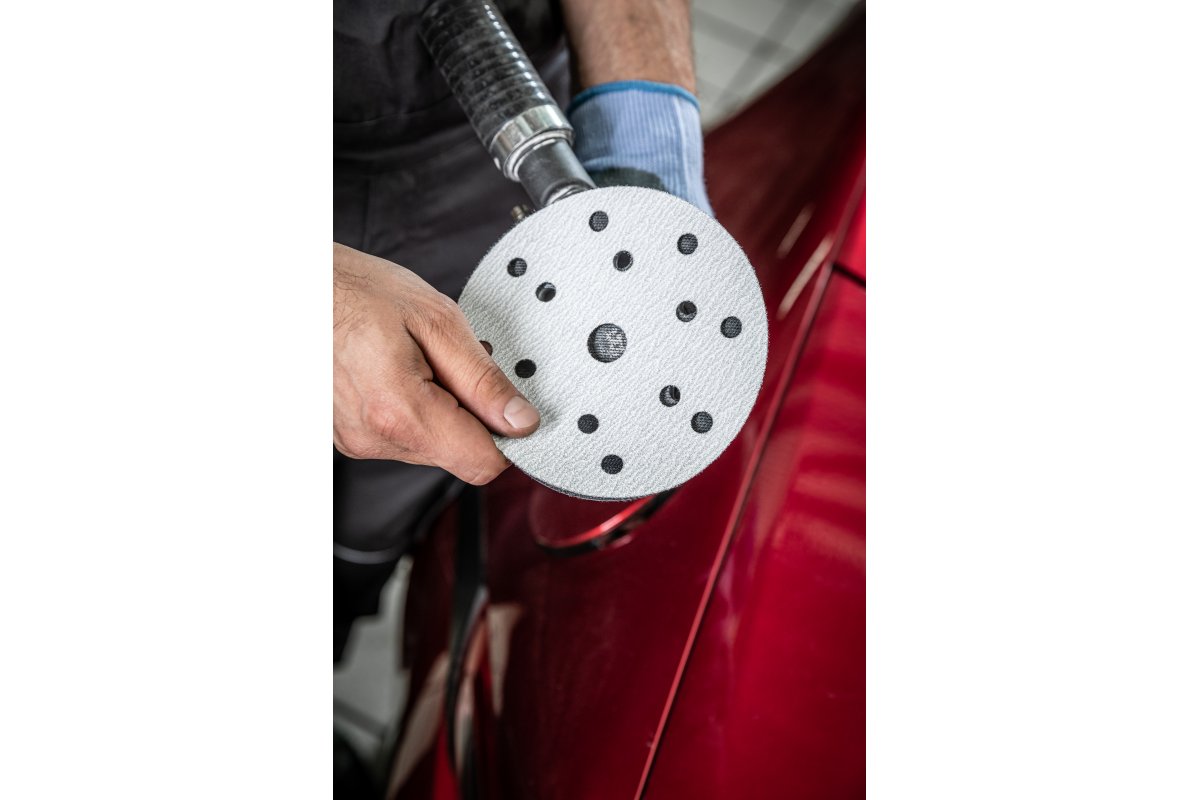 Круг шлифовальный на липучке с диаметром 150 мм для угловых и эксцентриковых шлифовальных машин, оснащенных соответствующими насадками. Предназначен для шлифовки шпатлевки, краски и лака. В основном используется в промышленности, ремесле и строительстве. Предназначен для профессионального использования.