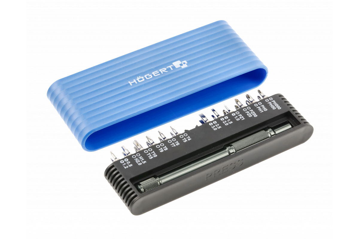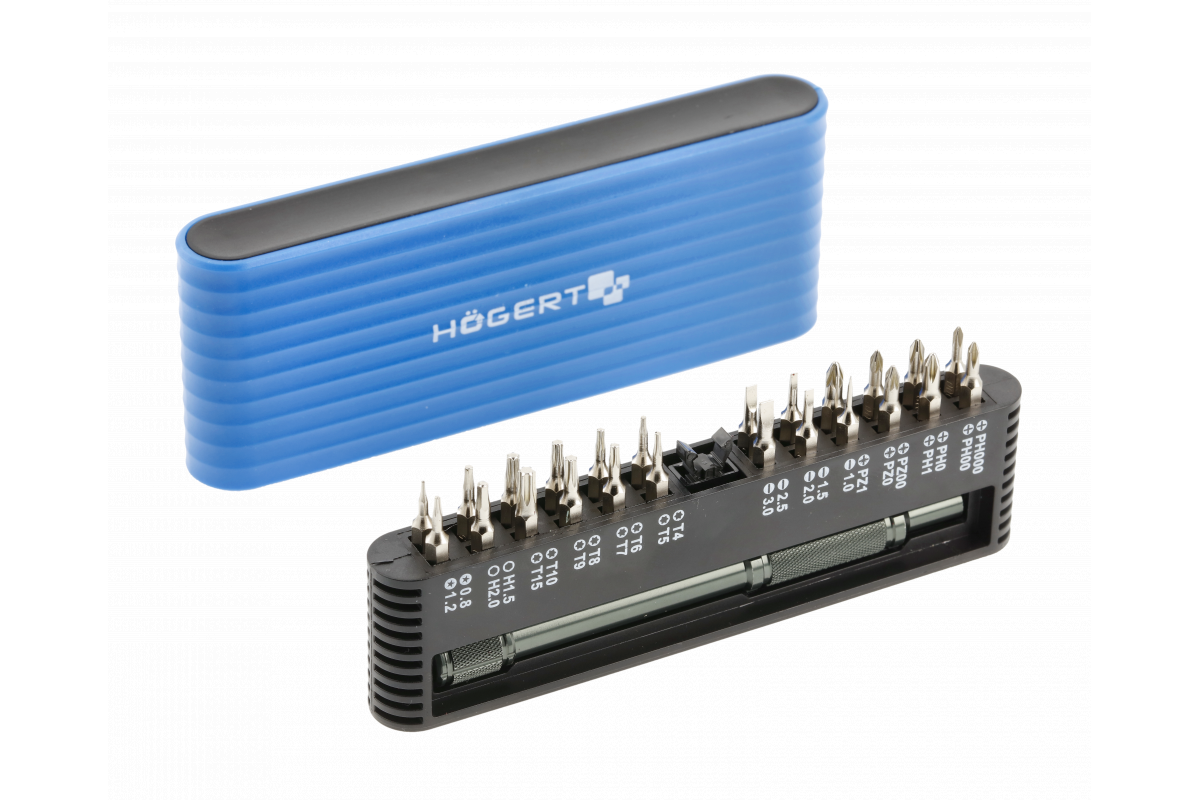 Набор отверточных бит из 25 предметов, включая адаптер. Изготовлены из высококачественной легированной стали, что обеспечивает долговечность и устойчивость к деформации. Используется в мастерской и при ремонтно-строительных работах.