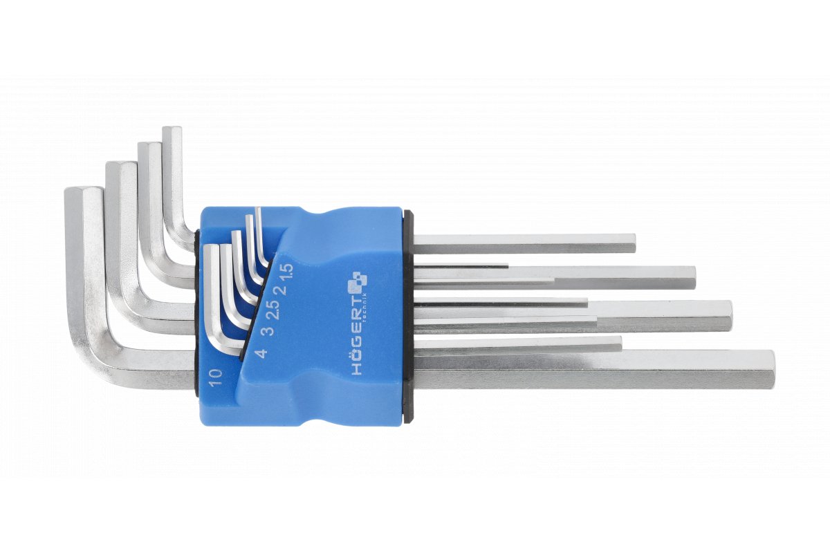 набор прецизионных длинных шестигранных гаечных ключей с шестигранным поперечным сечением из 9 предметов, специально для ослабления и затягивания болтов в ограниченном пространстве. Незаменимы в мастерских, а также при ремонтно-строительных работах или в каждом домашнем хозяйстве.