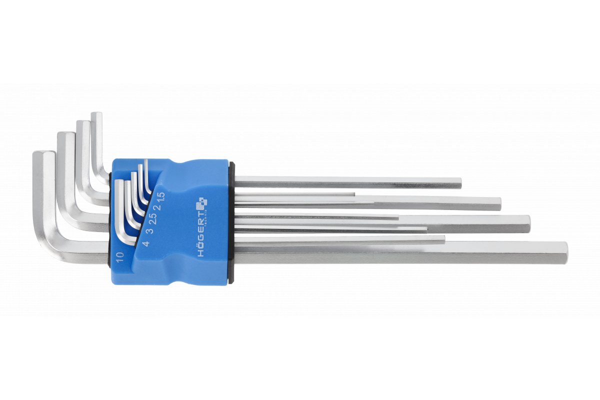 набор прецизионных экстра длинных шестигранных гаечных ключей с шестигранным поперечным сечением из 9 предметов, специально для ослабления и затягивания болтов в ограниченном пространстве. Незаменимы в мастерских, а также при ремонтно-строительных работах или в каждом домашнем хозяйстве.