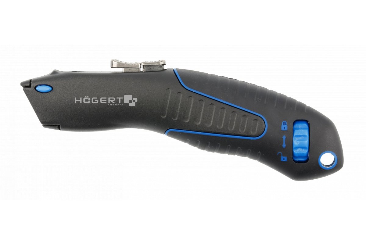 Нож с трапециевидным лезвием, пригодится при проведении отделочных работ. Лезвие с повышенной износоустойчивостью.