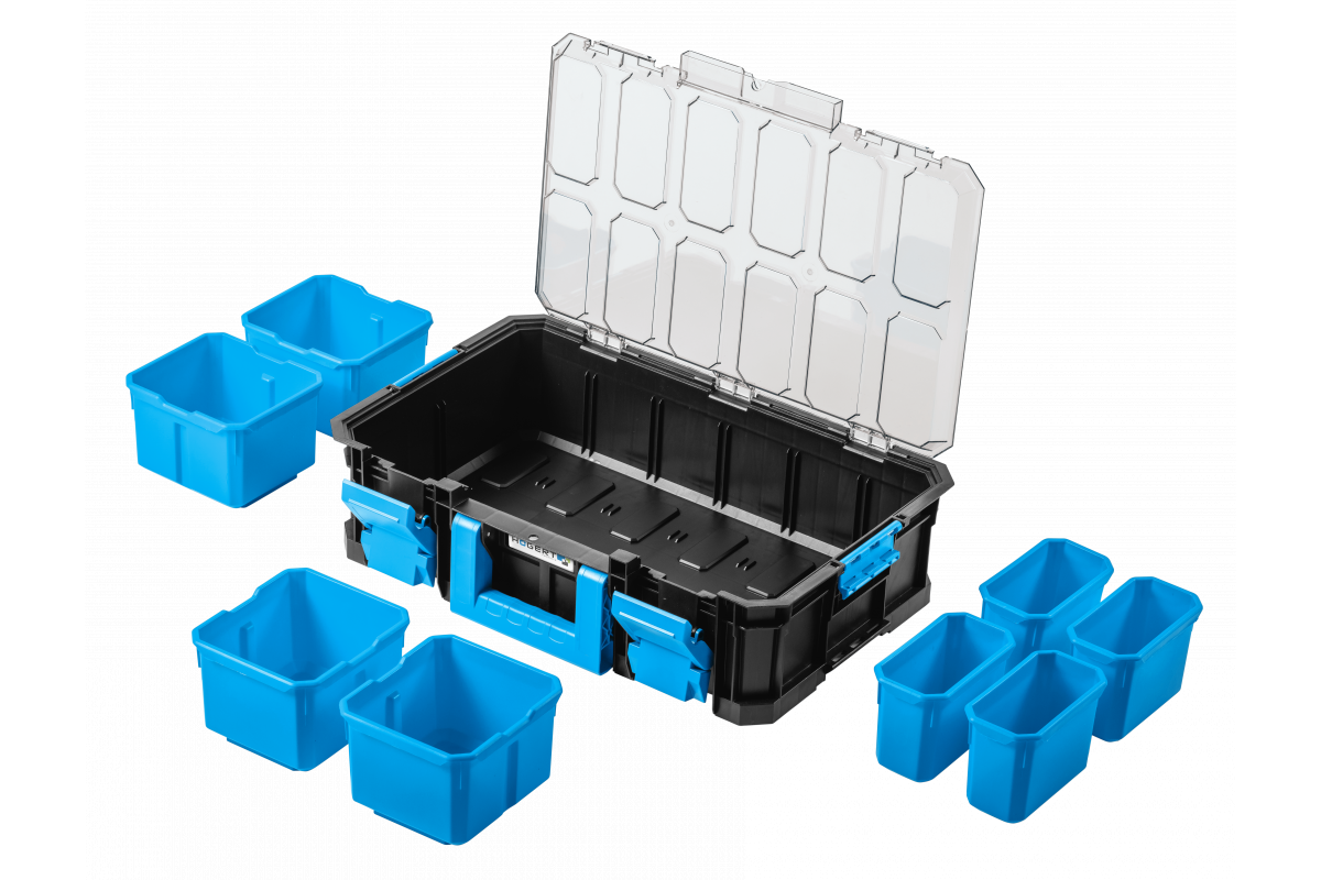 Органайзер с крышкой из поликарбоната с отделами для инструментов и аксессуаров — это высококачественный ящик для инструментов, характеризующийся высокой прочностью. Он создан для требовательных пользователей. Поставляется с 8 съемными отсеками, которые позволяют хранить небольшие инструменты, аксессуары и другие предметы. Органайзер имеет максимальную грузоподъемность до 20 кг. Прочные крепежи из АБС-пластика обеспечивают безопасность при транспортировке. Предназначен для профессионального использования. Он отлично используется во многих отраслях, таких как строительство, промышленность, автомобилестроение или логистика.