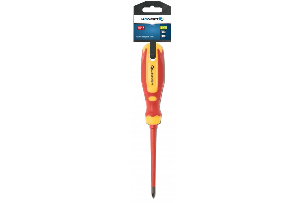 HOEGERT Отвертка изолированная крестовая PZ2, 100 мм, 1000 V, сталь CrMo