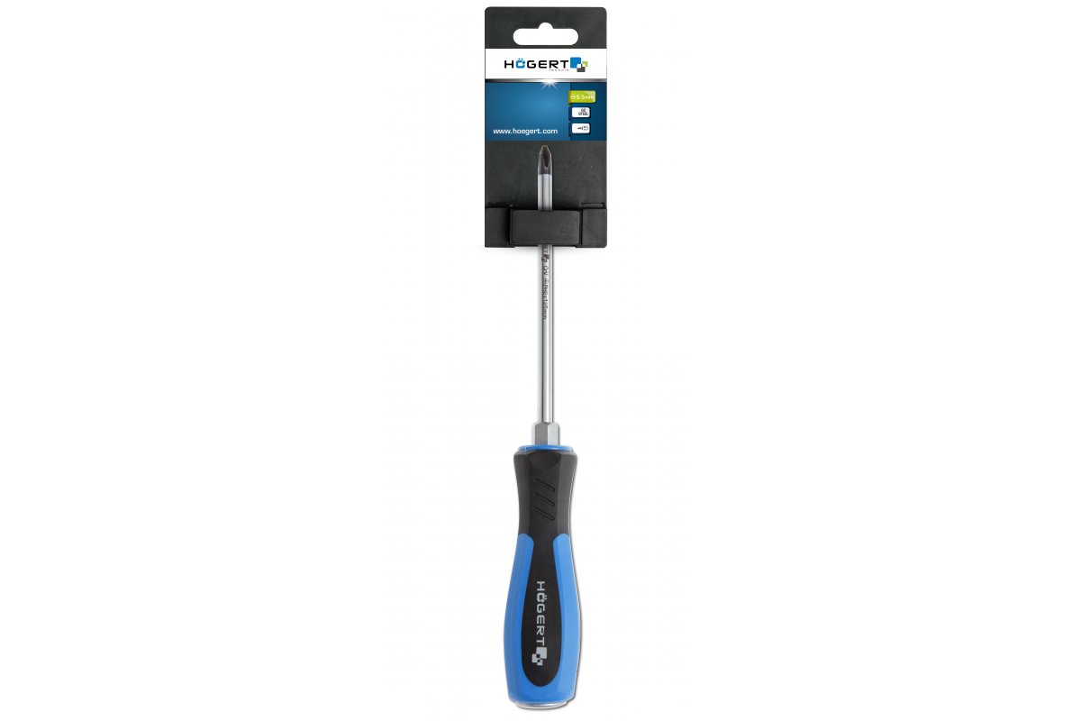 HOEGERT Отвертка силовая с металлическим затыльником PH2 125 мм, CrV