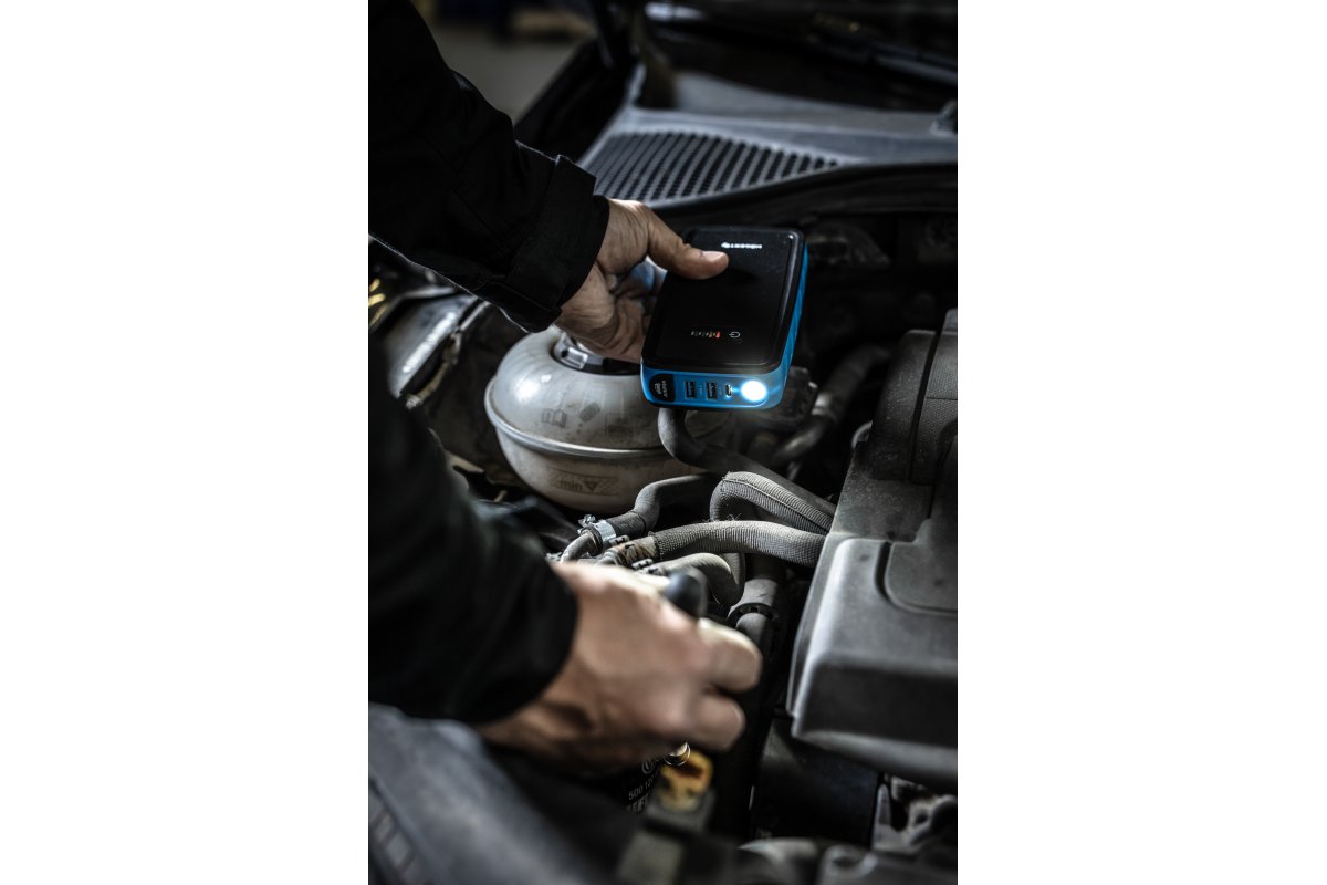 Пусковое устройство с током 400 А, с возможностью кратковременного увеличения до 800 А, представляет собой надежное решение для аварийных ситуаций, связанных с аккумулятором вашего автомобиля. Аккумулятор, построенный по литий-полимерной технологии, гарантирует длительный срок службы и безопасное использование устройства. Контрольные светодиодные индикаторы дают информацию о состоянии заряда батареи. Кроме того, стартовое устройство оснащено фонариком с тремя функциями — постоянным светом, мигающим светом и светом SOS, который может оказаться чрезвычайно полезным в случае возникновения чрезвычайной ситуации в темное время суток. Устройство также имеет 2 USB-входа, что позволяет заряжать телефон или другое устройство.