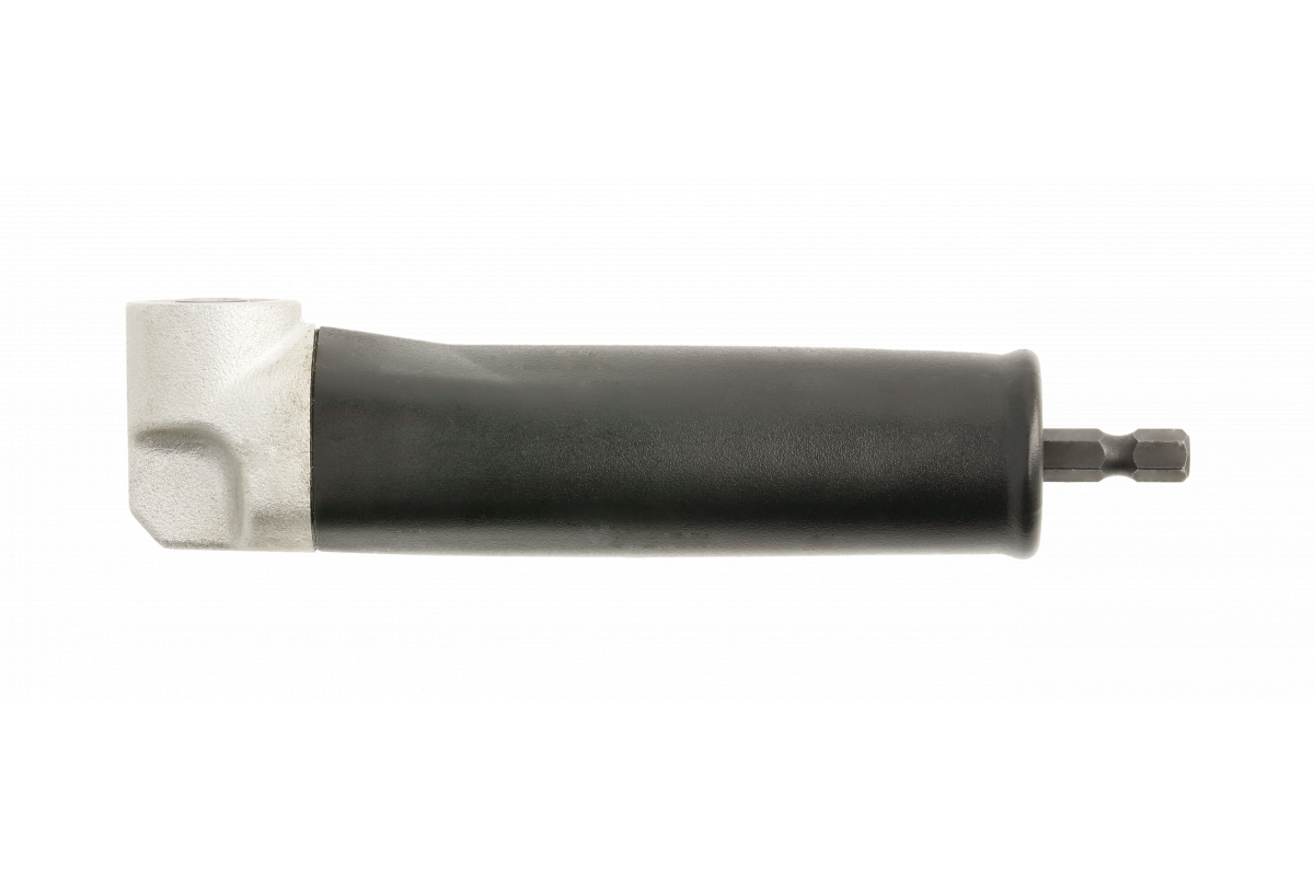 Адаптер с углом 90 градусов предназначен для сверления, завинчивания и отвинчивания в труднодоступных местах. Он может работать с ударными драйверами и дрелями-шуруповертами с патроном 1/4″.