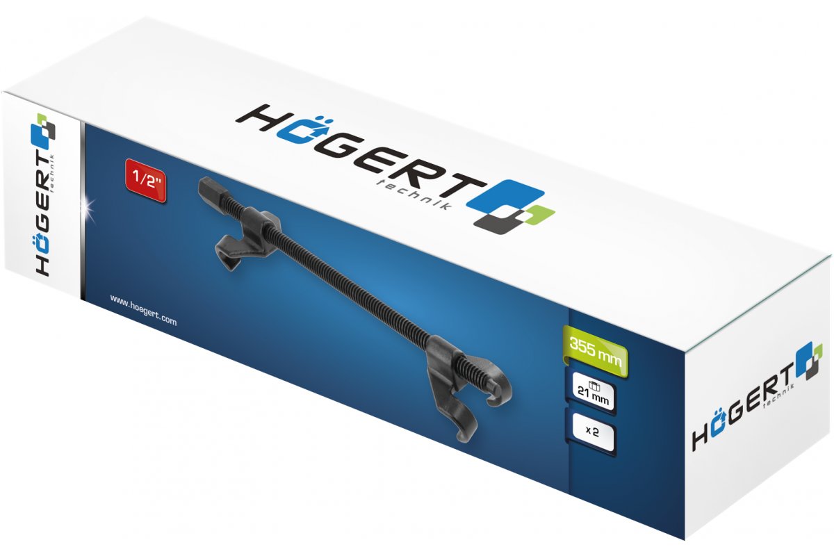 Стяжка пружин незаменима при профессиональном обслуживании шасси. Подходит для всех типов рессор в стойках типа макферсон (MacPherson) и независимых рессор. Стяжка работает с храповым механизмом 1/2″. Она имеет тонкую резьбу, что облегчает работу под нагрузкой пружины. Работа с устройством полностью безопасна благодаря специально профилированным двуплечим рукояткам.