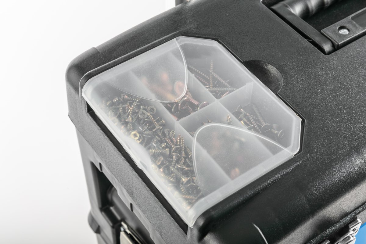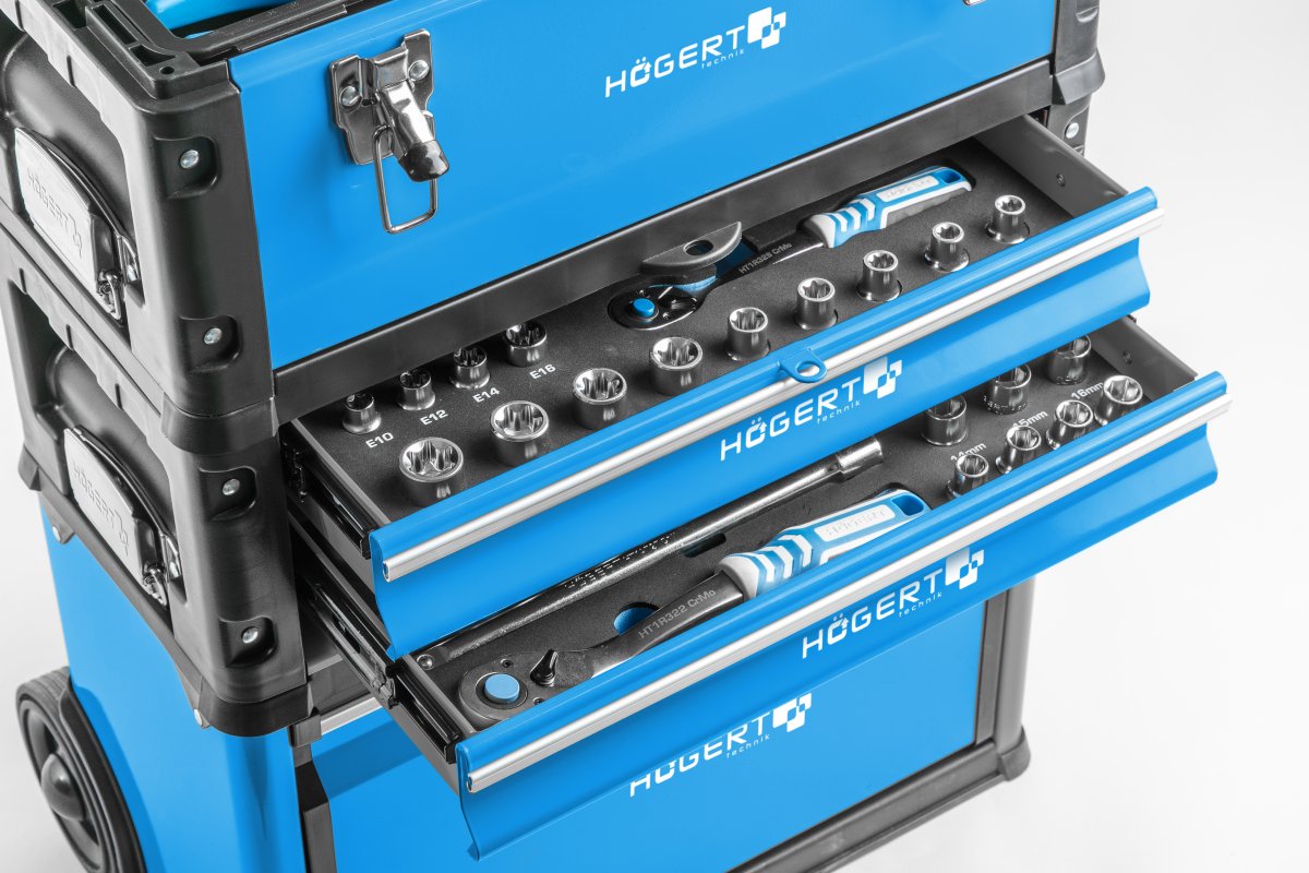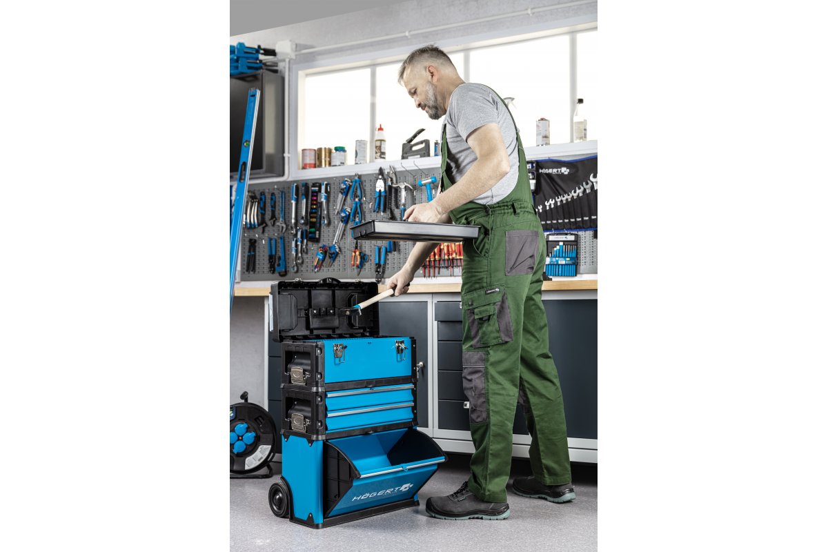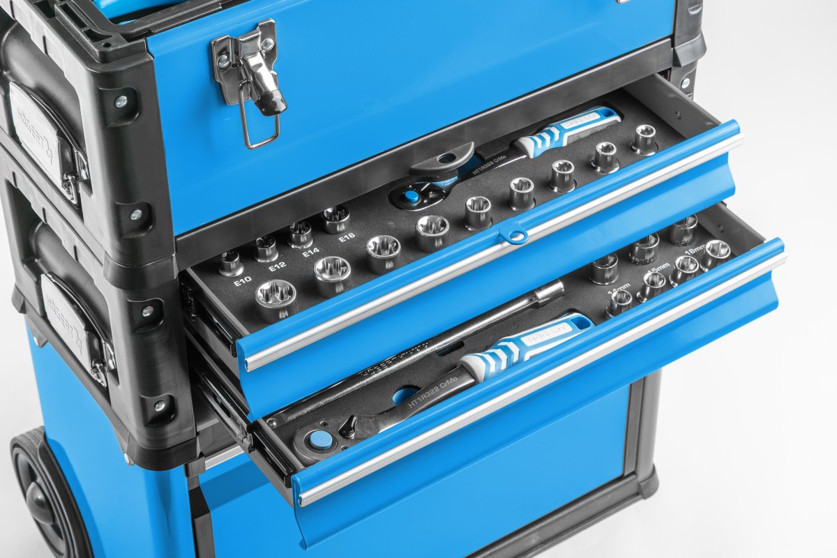3-сегментый, модульный, мобильный сервисный шкаф. Три независимых модуля: с ящиком, выдвижными ящиками и просторным отсеком для хранения позволяют упорядоченно хранить до 45 кг инструментов. Компактные размеры, установленные колеса и телескопическая складная ручка позволяют осуществлять транспортировку на автомобиле и доставку практически на любое рабочее место. Благодаря этому тележка идеально подходит для компаний, предоставляющих услуги по техническому обслуживанию, авторемонтных мастерских, а также в любой домашней мастерской. Идеальное решение для профессионалов, ценящих мобильность, безопасность и гибкость.
