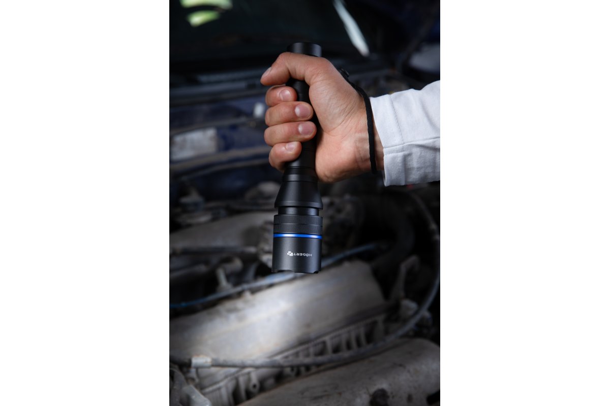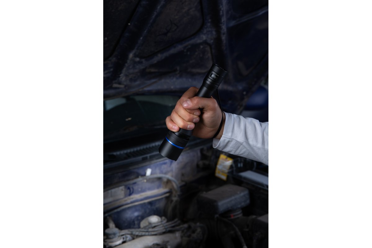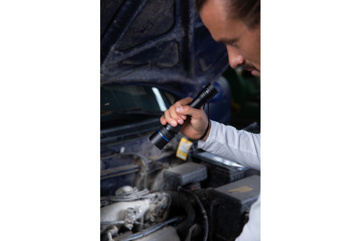 Легкий, прочный, алюминиевый фонарик с эффективными светодиодами LED. Водонепроницаемый корпус класса IPX7 защищает от последствий погружения в воду на глубину до 1 метра в течение 30 минут.