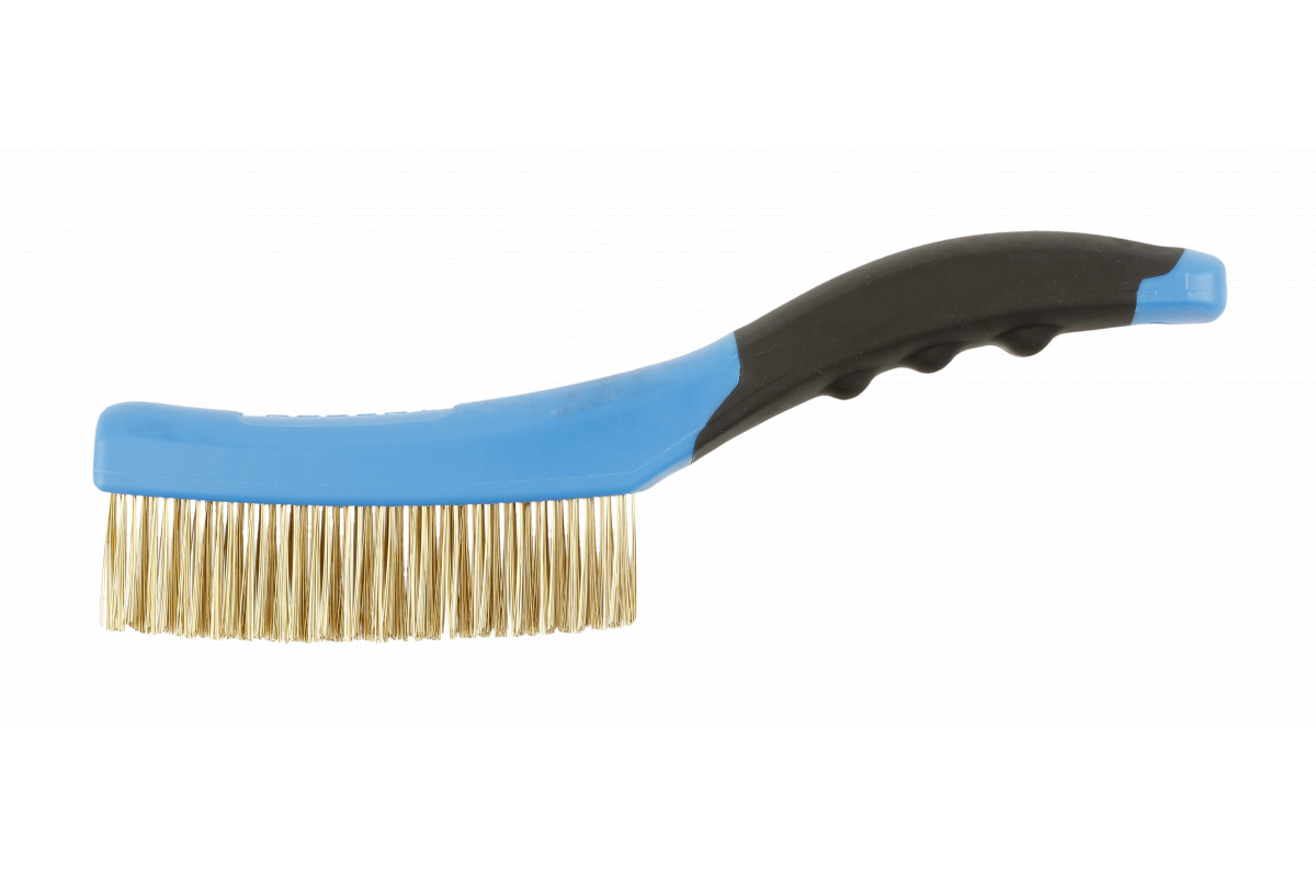 Щетка изготовлена из латунной проволоки, прочно закрепленной в пластиковом корпусе.